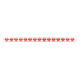 Graphic image of red heart, depicted as a three dimensional "jelly" is replicated on a white background in a single row.