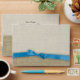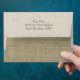The look of burlap with a blue ribbon printed on this custom envelope. Matching invitations available.