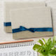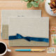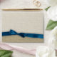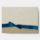 The look of burlap with a dark blue ribbon printed on this custom envelope. Matching invitations available.