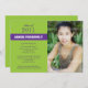 Highlight that soon-to-be grad with this announcement. Small crosses overprint a lime background with their name standing out in a violet ribbon. Available in alternate colours with matching products.