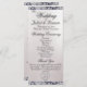 This romantic design features an elegant pearl white background with ribbon and glitter borders, wedding ceremony details & thank you on the front with wedding party members on the back. Available in several colours for your wedding theme. (Ribbon & glitter is simulated in the artwork). Available in several colours for your wedding theme colours. Designed to coordinate with the "Romantic Hearts, Ribbon & Sparkle on Pearl" collection. To change details, click «Personalise». To move the text or change the text size, font, or colour click «Click to customise further»
