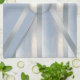 Made from an original photograph by ZoeSPEAK of a stormy sky over the ocean, the design on this Kitchen Towel looks like a pillow envelope, with silver ribbons crisscrossing the soft background shades of pale blues, greys and white. The flap of the envelope is fabric textured grey blue with a silver edge, and ribbons following the diagonal edges. Horizontal silver ribbons cross the sky background, and in the centre is a great big round button closure.