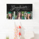 With a stylish script "graduate" in a trendy ribbon script, this three photo graduation banner is the perfect way to celebrate your senior. This black and white design by Lea Delaveris Design features three photos along with room for customisable text including name, school, year and more. This preppy graduate banner is great for high school graduation parties, college graduation parties and more. Find more coordinating designs and other styles in the collection.