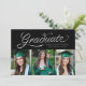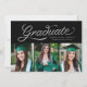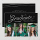 With a stylish script "graduate" in a trendy ribbon script, this three photo graduation announcement and graduation invitation is the perfect way to celebrate your senior. This black and white card by Lea Delaveris Design features three photos on the front along with room for customisable text including name, school, year and more. The back is a coordinating black framed with white stripes and has room for graduation party invitation details. This combination graduation announcement and invitation is also available as a digital download and can be done in other colours as well. Please message if you're looking for another colour you don't see.