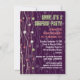Olive, red and white strings with spheres attached to them hang down as if they were released into the air giving this party invitation a festive feel. The image is also used as a watermark against the rich purple background. Great for any type of party: a corporate event, birthday party, surprise party or a cocktail party. Available in alternate colours with matching products.