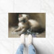 In this delightful work of art, a Siamese kitten is captured in a playful moment, delightfully tangled up in a pale blue and lavender ribbon. Against a rich, dark brown background, the kitten's light fur and delicate features stand out in striking contrast. Its paws are caught up in the ribbon, revealing the joyous, curious nature of this tiny feline. The painting exudes an old masters feel, with precise brushwork and expert use of light and shadow. Enjoy the the charm and whimsy of this adorable kitten's playful antics in "Ribbon Tangle", a painting that will delight and enchant all who behold it.