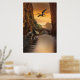 The Triceratops is near the river, the Velociraptor is nearby crossing a stone bridge and the Pterodactyl is flying overhead as the sun goes down These Dinosaurs are not fighting, just hanging out in the same ravine at sunset. .This poster of three popular Dinosaurs from the Cretaceous period is available in many sizes and prices as well as a digital download.