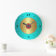 Rich aqua with Gold Centre >Plain Kitchen Clocks