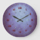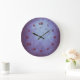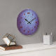 A blueish purple coloured grunge clock face with gold minutes on the outer ring, roman numerals in lower case on the inside and silver highlights on the inside. A pretty clock for any situation.