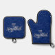 Rich Blue with Silver Coloured Swirls Hanukkah Oven Mitt & Pot Holder Set