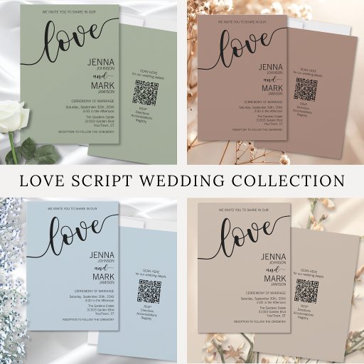 Rich Mocha Black Love Script Minimalist Wedding Invitation with QR code. This minimalist design features elegant script and clean typography, making it the perfect choice for the stylish, contemporary couple. Lovely trending rich mocha brown with contrasting black script balances modern sophistication with organic warmth. The back features a QR code to link to all your wedding details. If you prefer, delete the text and QR code for a plain card back. Use capital letters when inputting your names, as shown in the sample, if you like the design as is. Contact the designer for any customisation questions