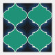 Rich navy blue and peacock green moroccan pattern in 12 inch tiling
