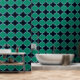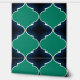 Rich navy blue and peacock green moroccan pattern wallpaper