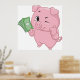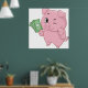 A rich pink pig holding some money. This design looks really effective on these Poster