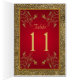 This red and gold table number card matches the RSVP card and wedding invitation found below. If there are any additional matching items you require, please email me your request to niteowlstudio@gmail.com.