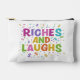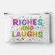 This sew bag design features the vibrant and playful phrase "RICHES AND LAUGHS" surrounded by colourful confetti and dollar signs, creating a lively and cheerful accessory perfect for carrying essentials with a touch of fun.