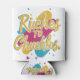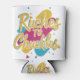 A playful and eye-catching can cooler featuring the phrase "Riches to Chuckles" in a bold, playful font. The design could be simple and minimalist, or more intricate with additional details like cartoonish characters or gold coins. The cooler should be insulated to keep drinks cold and have a secure closure. Consider using vibrant colours and a fun, whimsical aesthetic to match the lighthearted nature of the phrase.
