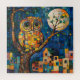 Richly colored Owl Jigsaw Puzzle. Oil painting style with brightly blocked village over which the owl sits high up in the tree branch. The moon warmly glows in the night sky. This modern piece of artwork translates well into a jigsaw puzzle and would make a wonderful gift for different occasions.