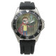 Has heft and feel of expensive stainless steel quartz wrist watches. Solid construction and good looks. Although it had a really top quality rubber strap, I substituted a stainless steel "Shark" style mesh strap, which I think is the most comfortable strap available. Perfect. True colors of original image. Clear, crisp image precisely aligned and spaced.