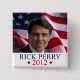 This pinback button has a photo of Republican Governor Rick Perry in front of an American flag waving in the wind.