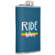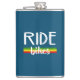 Happiness in life comes simply, just ride bikes. This colourful design has rainbow stripes and large text.