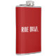 The flask itself is fine. It’s a cheap flask, obviously bought in bulk, however am prepared to overlook that. Given that it is a personalized item, I would have liked to have seen gift boxing instead of the generic packaging. Terrible printing, and/or quality. It’s a cheap, tacky vinyl. It is not cut straight and is also applied in a way that it is overhanging the bottom, causing the glue to catch on items and it will eventually roll and tear, damaging the wrap.