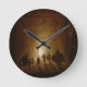 Riders and Pedestrians Passing Through an Arched P Round Clock