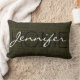 Rifle green Burlap Rustic Monogram Lumbar Cushion