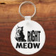 A simple but striking design featuring a drawing of a grumpy looking kitty cat, with huge letters that say RIGHT MEOW. Not later, get on it right now.... (meow), human!