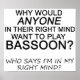 Why Would Anyone In Their Right Mind Want To Play Bassoon? Who Says I'm In My Right Mind? Although the creative side of the brain is the right side, that doesn't mean musicians have to be in their right mind. Visit our TemperamentalMusician web site for more musical designs!
