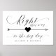 Simple Elegant Calligraphy Script Right This Way to the Big Day Wedding Arrow pointing right Sign, in beautiful flowing fancy letters and your personalised names. A stylish yet simple formal design in black and white or any background colour you choose. Just click the customise further link, shown under the text personalisation area on the right, and choose your custom colour background. This sign poster template makes it fast and easy to create stunning additions to your wedding decor. Signs can be enlarged, there are many sizes to choose from, as well as options for custom framing and matting. Wedding this way custom signage.