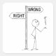 An illustration of a person standing next to a right wrong sign post. This design looks really effective on these Stickers