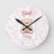 Riley | Custom Pink Teddy Bear Nursery Design Round Clock