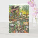 Ring Cycle Greeting Card - is a favourite fantasy colour drawing of the artist Bill Perkins that features a major-sized scene of perhaps a Gnome's Picnic as perhaps later in the day. There are frolicking gnomes and card playing ones too. All as a large dragon awakes amongst the great blooming sunflowers as in a mushroom garden that pixies have come to play in and take flowers from too. Further exploration of this Fairy Ring mushroom scene reveals much more as well! Inside of this same card is blank for any kind of added message for the sender of it also. From the online Artastix Store.