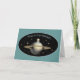 We gave the planet Saturn a short stem and cap like a classic Christmas tree ornament. The front of the card reads "Ring in the holidays..." in an oval field of stars with the Saturn ornament in centre.