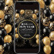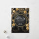 This is a sleek and glamourous New Year's Eve party invitation featuring a black and gold theme. The background is predominantly black, adorned with gold and black balloons clustered at the top corners and scattered throughout the edges. In the background, golden fireworks and sparkling details add a celebratory vibe. The central focus is a large black circular area with a thin gold outline, housing the event details in an elegant and readable format. Fully editable, instant downloadable and printable through Zazzle platform!