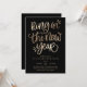 This New Year's Eve party design features a gold faux foil texture with hand lettered text on a chic black background.