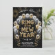 This is an elegant and celebratory New Year’s Eve party invitation with a black and gold theme. The design features a black background adorned with shimmering gold and silver fireworks at the top and scattered glitter throughout. A festive arrangement of gold, silver, and white balloons frames the sides, complemented by curling golden ribbons for added flair. At the centre, the bold headline "RING IN THE NEW YEAR!" is displayed in metallic gold balloon-style letters, immediately capturing attention. Fully editable, instant downloadable and printable through Zazzle platform!