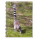 Ring-tailed lemur (Lemur catta) seen from front and walking on grass with tail in the air