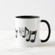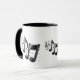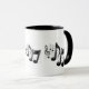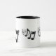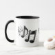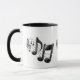 Ringer mug has handle and rim of matching colours. Many colours to pick from. The mug is white with black handle and rim that compliment the black flowing music staff and notes.