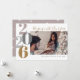 Affordable custom printed holiday cards with a simple template for customisation. Announce your holiday season engagement with this modern minimalist New Year photo card. The design features large typography with the new year date and "Ringing in the New Year" headline in muted mauve, grey and gold colours. Personalise it with your photo and custom text. Use the design tools to choose any fonts and colour, add more photos and create a unique one of a kind New Year photo magnet.