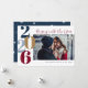 Affordable custom printed holiday cards with a simple template for customisation. Announce your holiday season engagement with this modern minimalist New Year photo card. The design features large typography with the new year date and "Ringing in the New Year" headline in burgundy, navy and gold colours. Personalise it with your photo and custom text. Use the design tools to choose any fonts and colour, add more photos and create a unique one of a kind New Year photo magnet.