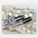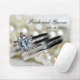The pretty Rings and White Pearls Wedding Mousepad will add some elegance to your desk or workspace. This classy custom wedding mouse mat features a close up photograph of a round diamond engagement ring and wedding band set with a white string of pearls necklace.
