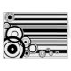 Simple black and white graphic design made up of retro rings and stripes. The design is transparent so you can choose whatever background colour you like. Image available on various gifts and products.