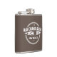The flask itself is fine. It’s a cheap flask, obviously bought in bulk, however am prepared to overlook that. Given that it is a personalized item, I would have liked to have seen gift boxing instead of the generic packaging. Terrible printing, and/or quality. It’s a cheap, tacky vinyl. It is not cut straight and is also applied in a way that it is overhanging the bottom, causing the glue to catch on items and it will eventually roll and tear, damaging the wrap.