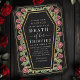 It’s time to bid farewell to the thirties & embrace the forties in style! These 40th birthday invites feature a sleek coffin design on roses & thorns with the text 'Death to Her Thirties'—perfect for a dark, glamourous celebration! Order now & make this milestone unforgettable! Please note that the gold on the invitation is NOT real foil and is printed in flat colours.