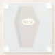 This awesome glass coaster features a creepy coffin made from wood with gold edging. The coffin lid is slightly open revealing only darkness within. The gold plaque on the front of the coffin has spooky black text on it that says RIP, giving no clue who or what might be lurking inside. This fun yet sinister coffin is ideal for Halloween. The bleak grey background acts to draw the eye of the observer towards the coffin of doom.