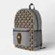 This awesome backpack features a creepy coffin made from wood with gold edging. The coffin lid is slightly open revealing only darkness within. The gold plaque on the front of the coffin has spooky black text on it that says RIP, giving no clue who or what might be lurking inside. This fun yet sinister coffin is ideal for Halloween. The bleak grey background acts to draw the eye of the observer towards the coffin of doom.