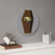 This awesome clock features a creepy coffin made from wood with gold edging. The coffin lid is slightly open revealing only darkness within. The gold plaque on the front of the coffin has spooky black text on it that says RIP, giving no clue who or what might be lurking inside. This fun yet sinister coffin is ideal for Halloween. The bleak grey background acts to draw the eye of the observer towards the coffin of doom.