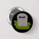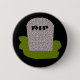 This fiendish butrton features a grey tombstone with RIP in dripping text on it, standing on a patch of green grass. Befitting of this morbid design the background is black.